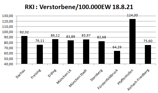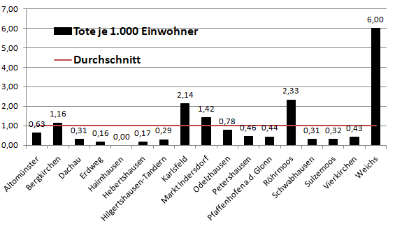 Im Vergleich mit den Nachbarlandkreisen liegen wir bei den Verstorbenen pro 100.000 Einwohner an 2. Stelle hinter Pfaffenhofen. Warum das so ist, bleibt ungeklärt.
