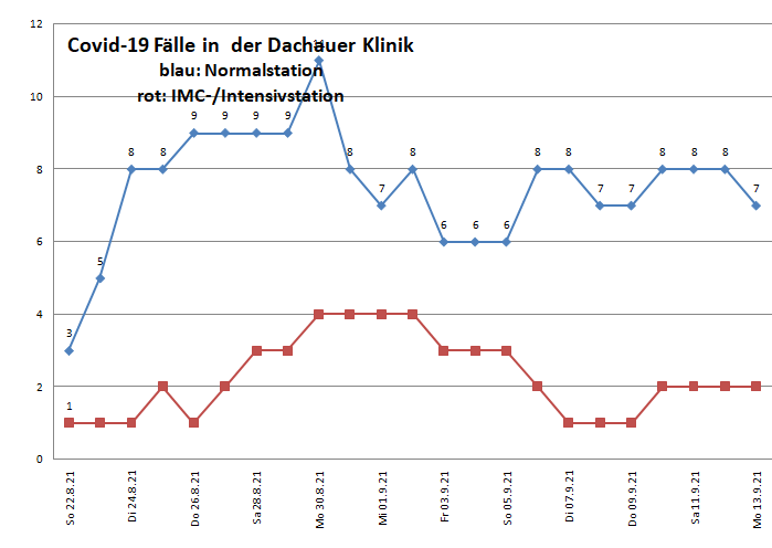 Die Werte der Dachauer Klinik werden nicht mehr täglich aktualisiert, der neuste Stand ist von diesem Montag.