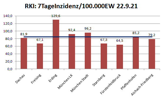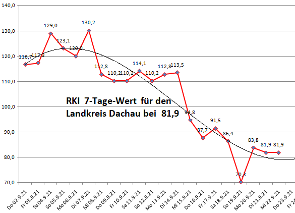 Der Landkreis Dachau liegt diese Woche mit mit81,9 knapp unter dem Mittel der Nachbarlandkreise (84,8).
