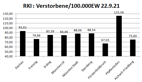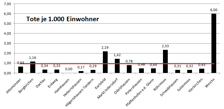 Im Vergleich mit den Nachbarlandkreisen liegen wir bei den Verstorbenen pro 100.000 Einwohner an 2. Stelle hinter Pfaffenhofen. Warum das so ist, bleibt ungeklärt.
