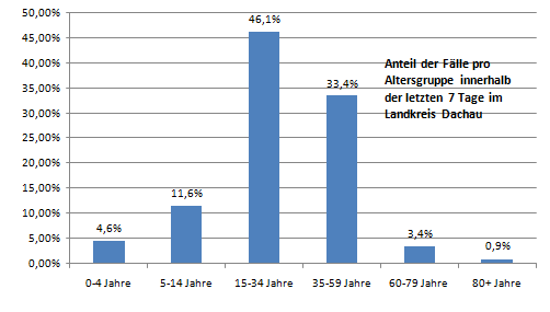 Der aktuelle Schwerpunkt liegt bei der Altersgruppe15-34 Jahre (Stand Dienstag).