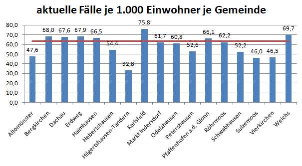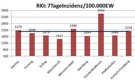 Der Landkreis Dachau liegt diese Woche mit einer Inzidenz von 2279 im Mittel der Nachbarlandkreise mit 2193.