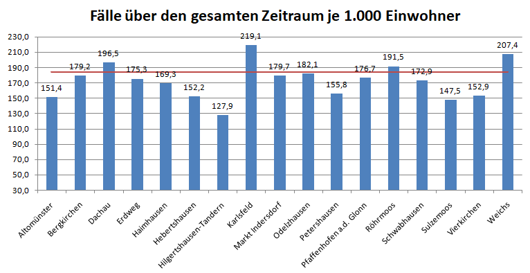 In der Betrachtung über den gesamten Zeitraum liegt der Landkreis Dachau vorn.