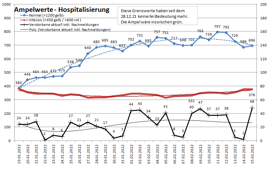Die Intensivbettenbelegung steigt auf 376 (Vorwoche 332).