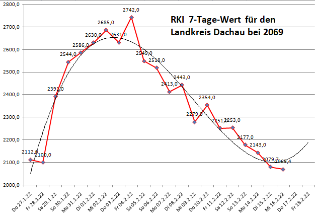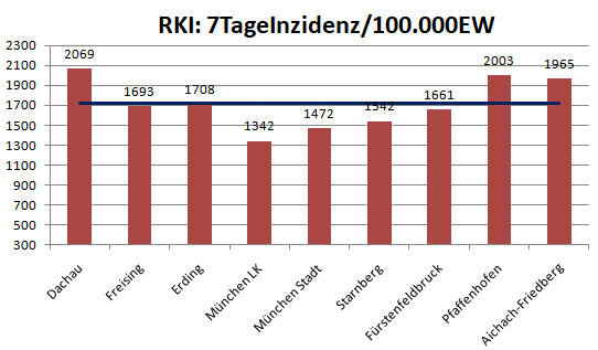 Der Landkreis Dachau liegt diese Woche mit einer Inzidenz von 2069 über dem Mittel der Nachbarlandkreise mit 1717.