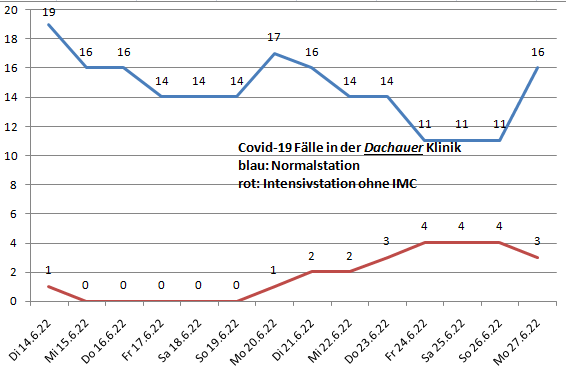 In Weichs ist die Rate 23,7 mal so hoch wie in Hilgertshausen-Tandern (bei Veränderungen gegenüber der Vorwoche werden die Balken grau hinterlegt). Auch hier der Stand vom 20.6.22