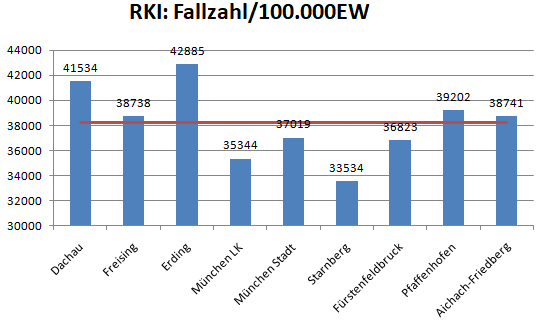 Im Vergleich mit den Nachbarlandkreisen steht nur Pfaffenhofen bei den Verstorbenen pro 100.000 Einwohner noch schlechter da als der Landkreis Dachau. Deutlich geringer ist der Wert für den Nachbarlandkreis Fürstenfeldbruck.