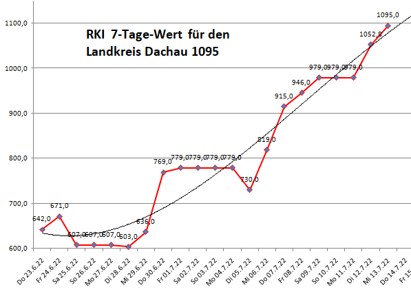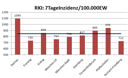 Der Landkreis Dachau liegt diese Woche mit einer Inzidenz von 1095 weit über dem Mittel der Nachbarlandkreise mit 845.