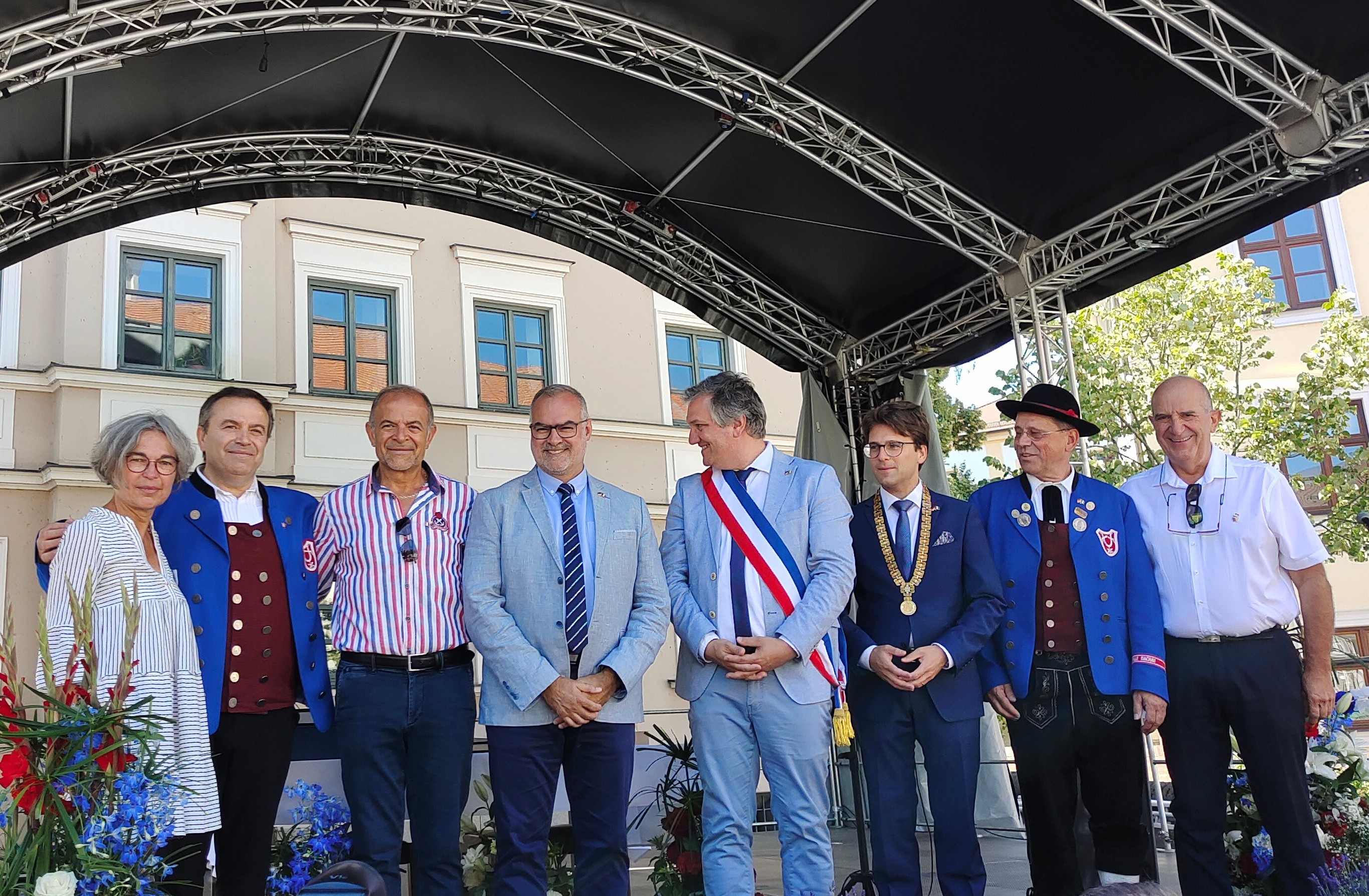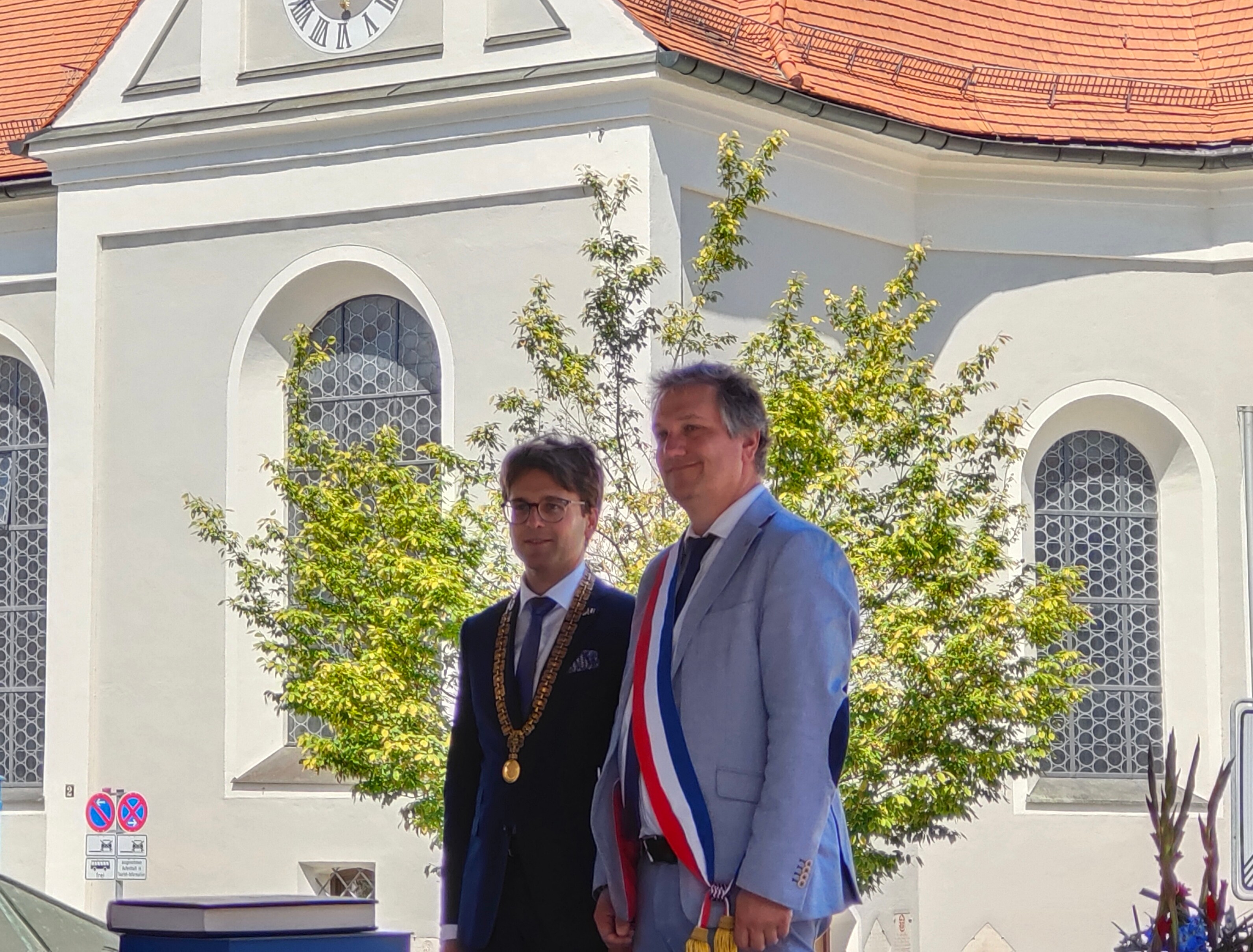 Nach einer coronabedingten Verzögerung von über zwei Jahren wurde am Samstag am Rathausplatz endlich die Städtepartnerschaftsurkunde zwischen Dachau und der französischen Gemeinde Léognan (bei Bordeaux) unterzeichnet.