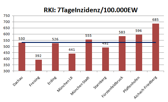 Der Landkreis Dachau liegt diese Woche mit einer Inzidenz von 530 im Mittel der Nachbarlandkreise mit 533.