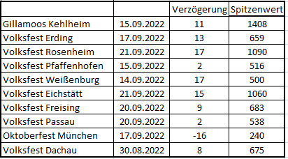 Ungefähr 2 Wochen nach Ende des jeweiligen Volksfest wurde in den Landkreisen der Spitzenwert erreicht. Für das Oktoberfest ist also um den 20.10.22 ein Spitzenwert für München und seine Nachbarlandkreise zu erwarten. Bei den Landkreisvergleichen zeigt sich jetzt schon, dass bei den direkten Nachbarn zu München die Werte ebenfalls steigen.