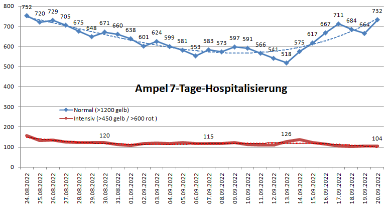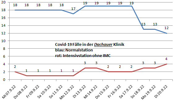 Die Werte der Dachauer Klinik: Mehr als 4 Intensivpatienten hatten wir das letzte mal am 22.5.22