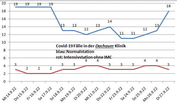 Die Werte der Dachauer Klinik: Mehr als 4 Intensivpatienten hatten wir das letzte mal am 22.5.22
