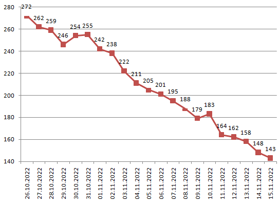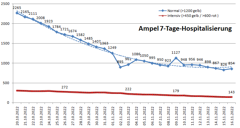 Aktualisierung vom 14.11.22 – Im Landkreisschnitt haben wir aktuell 0,8 (1,0) Fälle pro 1.000 Einwohner.