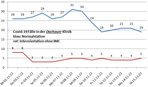 In der Dachauer Klinik geht die anzahl der Patienten auf der normalstation zurück.