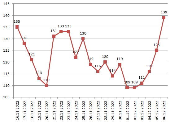 Die bayernweite Intensivbettenbelegung liegt bei139 (114 /133).