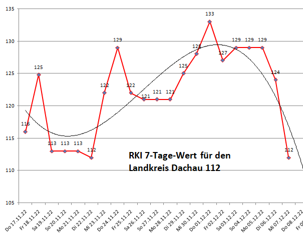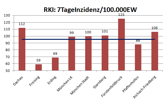 Der Landkreis Dachau liegt diese Woche mit einer Inzidenz von 112 (128) über dem Mittel der Nachbarlandkreise mit 95 (93).
