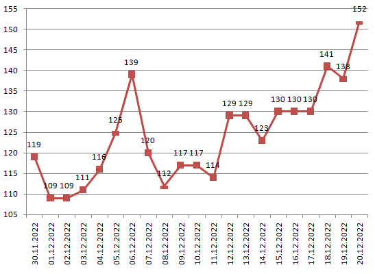 Die bayernweite Intensivbettenbelegung liegt bei 152 (129/139 /114 /133).