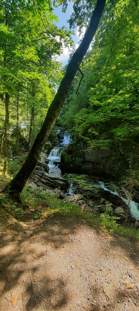 18.08.23 Statt Esel- nochmal E-Bike reiten, statt Mustangs in Wyoming tuns auch Haflinger auf der Königsalm, statt in den Niagarafälle baden in den Rottach-Wasserfällen. Und nirgendwo Geländer an den Bächen, alles frei zugänglich. Während Dachaus Bäche meist vergattert sind. Grüße Heidi und Kai