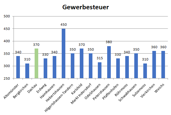 Platz 3 teilt sich die Stadt Dachau jetzt mit Karlsfeld, Hebertshausen ist Spitzenreiter vor Petershausen, nachdem sich der Hebertshauser Gemeinderat auf eine Anhebung der Gewerbesteuer um 100 Punkte verständigt hatte.