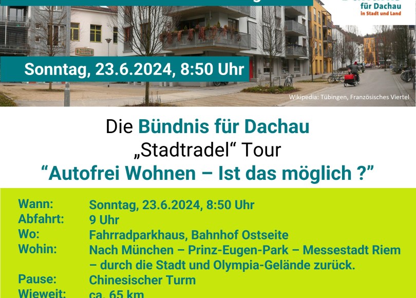 Das Bündnis für Dachau lädt herzlich zu unserer kommunalpolitischen Rad-Tour “Autofrei Wohnen – Ist das möglich”,im Rahmen des Stadtradelns ein.