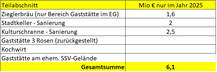 Hinterfragt wurde von der CSU ob es sinnvoll ist mit Steuergeldern Gaststätten im Gebäudebestand zu halten, da dies nicht zu den Kernaufgaben einer Gemeinde gehöre. Diese Argumentation ist durchaus nachvollziehbar, dennoch waren auch aus dem Gremium Hinweise einiger Stadträtinnen, dass dann der Leerstand in der Altstadt zunehme.