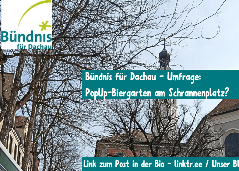 Der Wirtsgarten am Schrannenplatz in Dachau war in den letzten Jahren ein beliebter Treffpunkt. Mit einem PopUp-Biergarten könnte nach der vorübergehenden Schließung der Schranne zumindest dieses gastronomische Angebot in den Sommermonaten erhalten bleiben. Dies wäre ein wichtiger Beitrag zu einer vitalen Altstadt Dachau.
