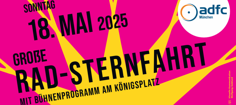 Am Sonntag den 18.05. wollen wir an der Radsternfahrt des ADFC zum Königsplatz teilnehmen. Der ADFC schreibt dazu „Die ADFC-Radsternfahrt am 18. Mai 2025 steht unter dem Motto: „Einfach aufsteigen, sicher ankommen – Radinfrastruktur in Autobahn-Qualität“ und fordert eine echte Verkehrswende. Gemeinsam mit dem Bündnis Radentscheid München demonstrieren wir für breite, sichere, komfortable Wege, klare Wegweisung, zügige Führung, gute Wartung – all das, was für den Autoverkehr längst selbstverständlich ist. Autobahnen stehen symbolisch für die Dominanz und Bevorzugung des Autoverkehrs: Deshalb wollen wir mit dem Rad auch auf die Autobahn! Dafür setzen wir uns ein!“