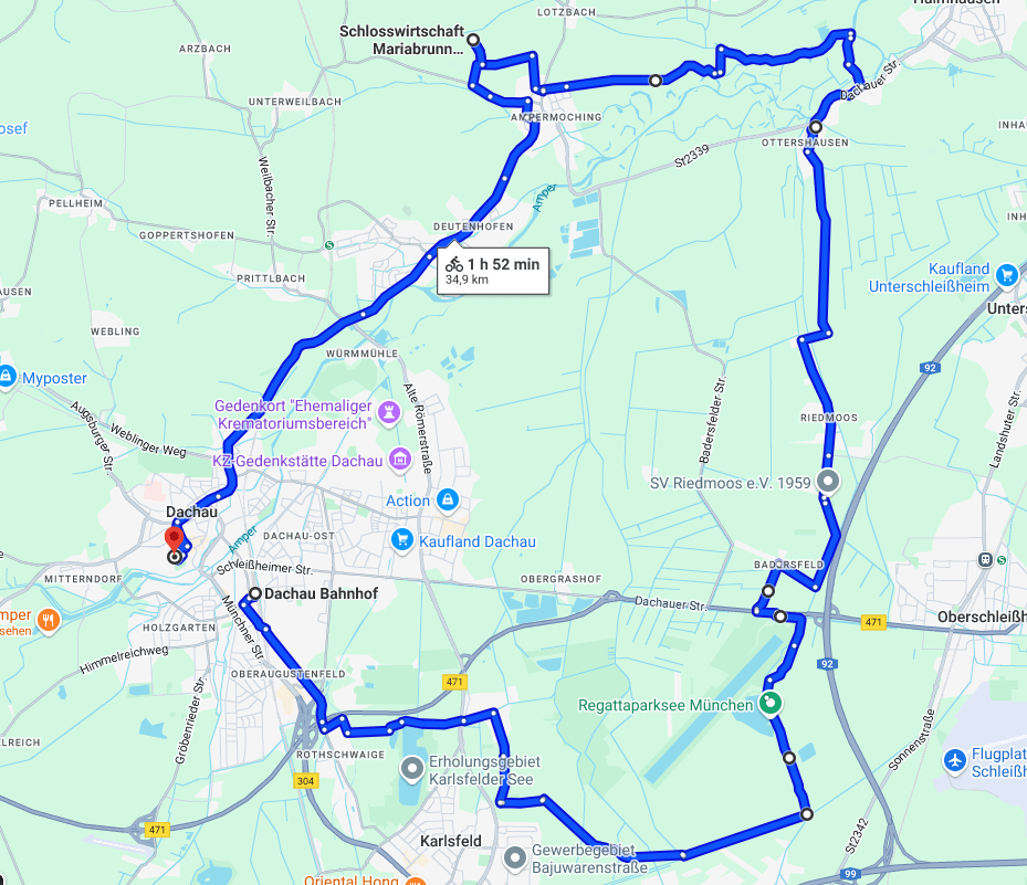 Wie angekündigt wollen wir das Stadtradeln mit einer kleinen Ausfahrt am Samstag, den 17.05.2025 starten. Treffpunkt ist um 12.00 Uhr am Radelparkhaus am Osteingang des S-Bahnhof Dachau. Wir machen eine kleine Runde durchs Dachauer Moos und an der Amper entlang nach Mariabrunn. Nach der verdienten Pause gehts zurück nach Dachau zum Biergarten am Wasserturm, wo wir den Tag ausklingen lassen können.