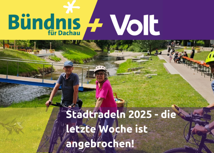 Zum Start der letzten Stadtradelwoche haben wir uns nochmal aufgemacht zur Abschlusstour. Bereits diesen Freitag endet die diesjährige Kampagne wieder – derzeit mit einem hervorragenden 4 . Platz für das Bündnis für Dachau plus Volt Team.