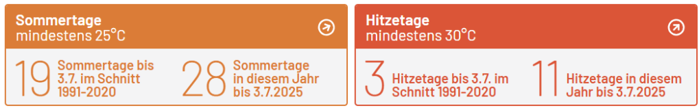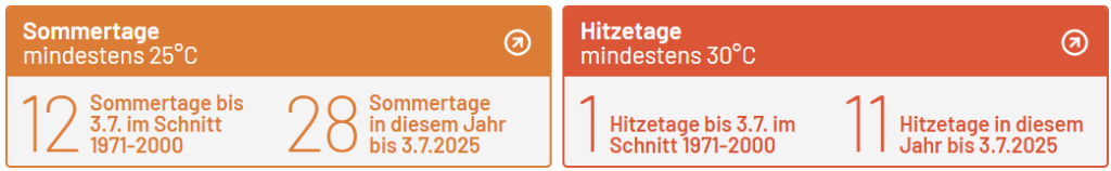 Die Entwicklung der Sommer- und Hitzetage in Dachau im Vergleich zu den durchschnittlichen Werten in 10 Jahresabschnitten. Die Tendenz ist eindeutig.
