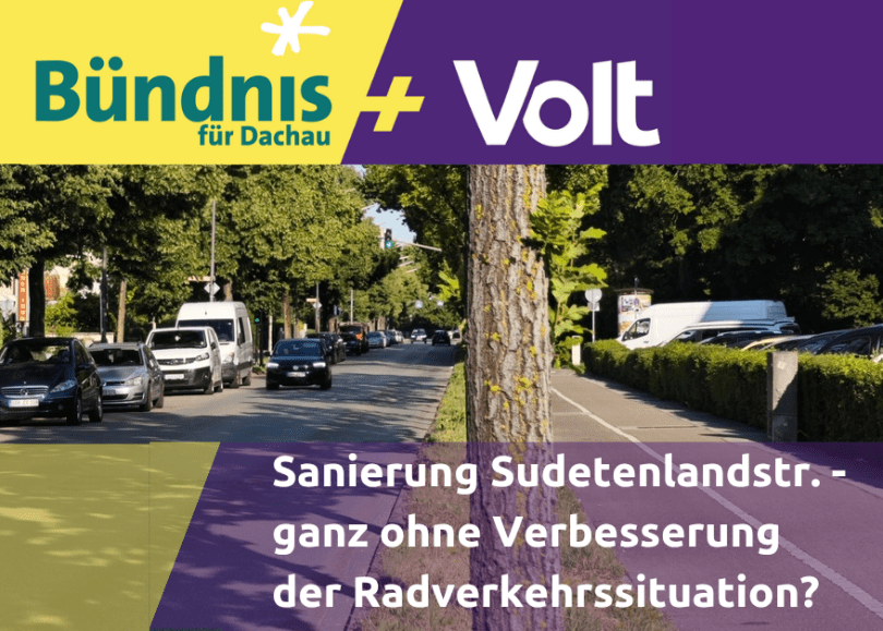 Die Sudetenlandstraße ist im einstimmig beschlossenem Radverkehrskonzept der Stadt Dachau als Hauptradverkehrsroute definiert.