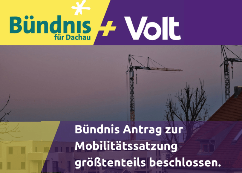 Dachau, 15.07.25 In weiten Teilen ist der Bauausschuss den Vorschlägen des Bündnis gefolgt. Bis zur nächsten Stadtratssitzung wird die Mobilitätssatzung (früher Stellplatzsatzung) überarbeitet und zum Beschluss vorgelegt.