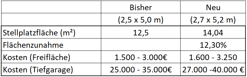 Schon im Bauausschuss hatte Bündnis-Stadtrat Kai Kühnel dafür plädiert, es bei den bisherigen Maßen zu belassen. Private Bauherren können ihre Stellplätze bei Bedarf gern größer planen – aber die Freiheit, auch kleinere Stellplätze auszuweisen, sollte erhalten bleiben.