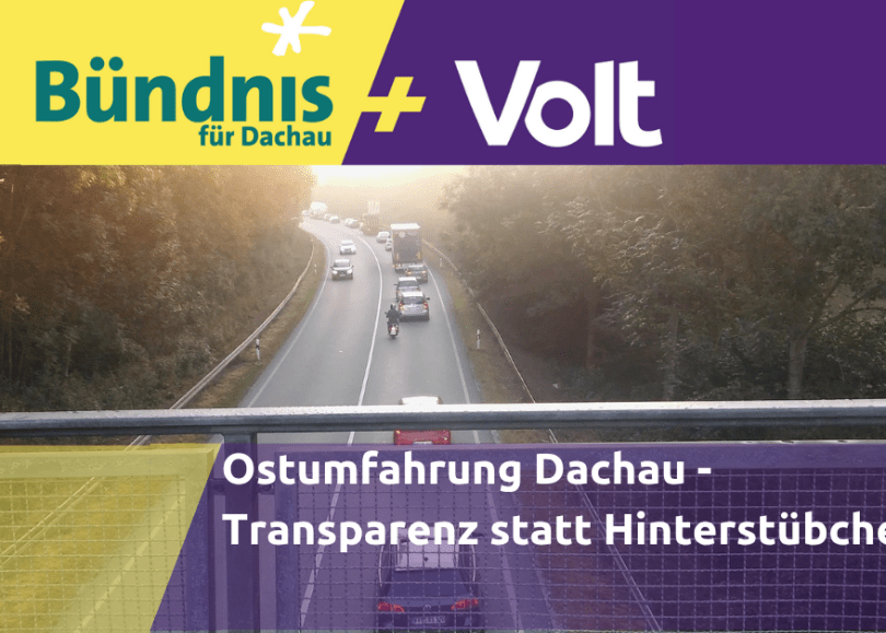 Im Bauausschuss vom Dienstag, den 23. 09.2025 wird im nichtöffentlichen Teil der Tagesordnung der derzeitige Sachstand zur Ostumfahrung von Dachau behandelt. Das Bündnis für Dachau stellt dazu folgenden