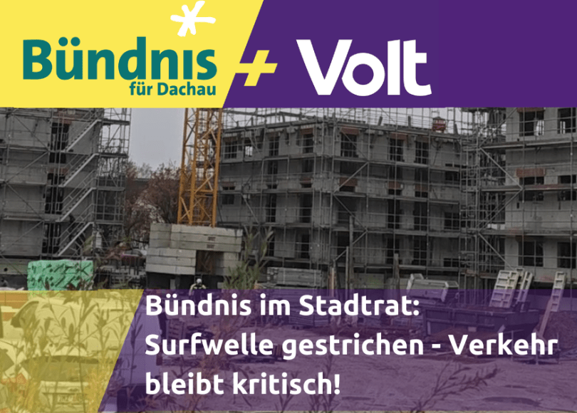 Das Bündnis für Dachau stand dem Projekt „Surfwelle“ bereits von Anfang an skeptisch gegenüber. Entscheidend ist für die Fraktion nicht die Frage, ob eine Surfwelle attraktiv wäre, sondern ob die verkehrliche Situation im Umfeld tragfähig bleibt. Die Ostenstraße könnte über mehrere Jahre hinweg als zentrale Umleitungsachse für die Freisinger Straße dienen – ein Szenario, das die Fraktion als erhebliche Belastung bewertet.