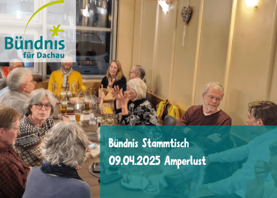 Das Bündnis für Dachau lädt jeden 2. Mittwoch im Monat zum Stammtisch in verschiedenen Lokalen und Stadtteilen ein. Unser nächster